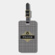 Elegant Monogrammed Black Gold Grey Plaid Luggage Tag