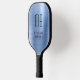 Elegant Monogrammed Faux Blue Brushed Metallic Pickleball Paddle