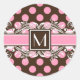 Pink and brown polka dot pattern with a custom monogram and elegant white swirly flourish border.