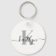 This simple, elegant keychain with your first name in a trendy script font in black and your first initial in a modern cap font in grey is perfect for your keys. It's stylish and modern and yet very classic.