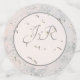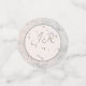 Design features an elegant peach and grey toned "marbling" effect as background to the shape displaying initials of bride and groom to be elegantly in centre in a silver-grey lettering. The appearance of delicate ribbons overlay the design. Reverse sies are peach coloured. Designed to accompany the "Peach and Grey Marble Wedding Suite."