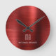 Elegant Monogrammed Red Brushed Metallic Round Clock