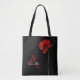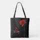 Elegant Monogrammed Red Poppy on Black Tote Bag
