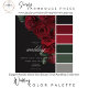 Embrace timeless elegance for your gothic-inspired celebration with our captivating wedding menu card. A soft black background provides the perfect canvas for a captivating, yet understated bouquet. Imagine a corner arrangement of muted blood red rose blooms, where rich red hues mingle with dark green foliage. This ethereal design exudes quiet sophistication, perfect for the couple seeking a touch of romantic darkness. An elegant, vintage script announces your card, while your details are showcased in a modern font, ensuring they stand out beautifully. This enchanting design creates a truly unforgettable design for your special event, setting the tone for a moody and elegant celebration of love. Created by Simply Farmhouse Press.