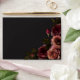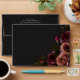 Embrace timeless elegance for your gothic-inspired celebration with our captivating wedding invitation envelope. A soft black background provides the perfect canvas for a captivating, yet understated bouquet. Imagine a corner arrangement of muted rose blooms, where soft rust blush and rich burgundy hues mingle with dark green foliage. This ethereal design exudes quiet sophistication, perfect for the couple seeking a touch of romantic darkness. Your wedding details are showcased in a modern font, ensuring they stand out beautifully. This enchanting design creates a truly unforgettable invitation for your special day, setting the tone for a moody and elegant celebration of love. Created by Simply Farmhouse Press.