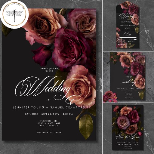 Embrace timeless elegance for your gothic-inspired celebration with our captivating wedding welcome poster sign. A soft black background provides the perfect canvas for a captivating, yet understated bouquet. Imagine a corner arrangement of muted rose blooms, where soft rust blush and rich burgundy hues mingle with dark green foliage. This ethereal design exudes quiet sophistication, perfect for the couple seeking a touch of romantic darkness. Your wedding details are showcased in a modern font, ensuring they stand out beautifully. This enchanting design creates a truly unforgettable invitation for your special day, setting the tone for a moody and elegant celebration of love. Created by Simply Farmhouse Press.