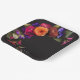 Embrace the opulent beauty of a fall floral harvest with our captivating bridal shower square paper plates without writing. A dramatic, yet soft black background provides the perfect canvas for a breathtakingly realistic bouquet. Imagine a vibrant explosion of colour, featuring roses in orange and dark magenta, with small magenta pink flowers and purple violets and alongside peach mums and other vibrant florals. Lush, dark green foliage completes the arrangement, adding a touch of natural elegance. This captivating design is perfect for any season, reflecting the passionate intensity of your love story. Your event details appear in a clean, modern white font, ensuring they stand out beautifully against the dramatic backdrop. This enchanting design creates a truly unforgettable design to celebrate your special day. Created by Simply Farmhouse Press.