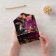 AVAILABLE WITH A QR CODE OR WITH OR WITHOUT DINNER CHOICES. Embrace the opulent beauty of a summer sunset or the rich hues of an autumn harvest with our captivating wedding invitation. A dramatic, yet soft black background provides the perfect canvas for a breathtakingly realistic bouquet. Imagine a vibrant explosion of colour, featuring mums in deep magenta and purple, with soft pink roses alongside bold gold orange sunflowers. Lush, dark green foliage completes the arrangement, adding a touch of natural elegance. This captivating design is perfect for any season, reflecting the passionate intensity of your love story. Your event details are showcased in elegant script, ensuring they stand out beautifully against the dramatic backdrop. This design creates a truly unforgettable invitation to celebrate your special day. Created by Simply Farmhouse Press.