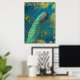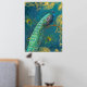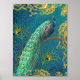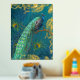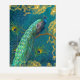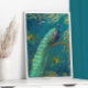 Elegant Moonlight Peacock n Feather Gold Foil Teal Prints