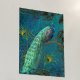 One of Audrey Jeanne's most loved paintings now available with real gold foil accents! This peacock is mysterious and elegant with gilded scrollwork, Peacock feathers and a midnight blue, teal and aqua background. Painted in oil pastel by internationally licensed artist and designer, Audrey Jeanne Roberts, copyright.