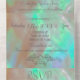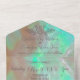 Elegant Mother-of-Pearl, green Wedding All-in-One Invitation (includes tear-off R.S.V.P.) with intricate flourishes. The mother-of-pearl background shimmers with colourful hues, adding a touch of iridescent elegance. Fully monogrammed in sophisticated grey script, allowing you to customise the details as you prefer. Minimal R.S.V.P.