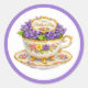 Elegant Mother's Day Teacup & Purple Violets Classic Round Sticker