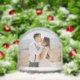Wedding keepsake snow globe features a portrait of the bride and groom newlywed couple on the front with an elegant black and white (colors can be modified) monogram of the married couple's first last name and wedding date that can be personalized on the back.