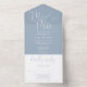 This all-in-one minimalist wedding invitation features elegant typography on a dusty blue background. The invitation includes a perforated RSVP card that can be individually addressed or left blank so you can handwrite your guest's address details. Designed by Thisisnotme©