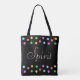 Modern multicolored heart flowers on black background Tote Bag. Spirit text can be personalised.