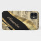 Modern vintage music sheet and black and gold swirl ribbon patterned graphic case with his or her personalised name or monogram initials to the customisable text templates to create a special unique music style case to protect your device. This cool stylish design, would be great for musicians or music lovers, to add their own name or text to the stylish elegant gold template. Visit the CUSTOMIZEDSKINS STORE for matching cases. PLEASE NOTE the golden colour is not metallic.
