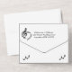 Elegant design for a music theme wedding. Include the RSVP with your invitation as a postcard for simple quick answers. Don't forget to add a stamp to the return RSVP. Simple design that has a high class look.