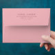 This wedding envelope features a minimalist design with centered text on a soft pink background, creating an elegant and understated look. The layout is simple and balanced, utilizing ample negative space to highlight the clean lines of the serif typography. The muted brownish-red font color adds a subtle contrast, enhancing readability while maintaining a sophisticated aesthetic. Perfect for formal occasions, this design exudes refined simplicity, making it ideal for couples seeking a classic yet contemporary invitation style.