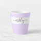 Personalized latte mug with elegant script typography and minimalist design. The template is set up for you to add your name in black and white. A modern, simple and trendy design in pretty lavender lilac or, if you prefer, you can change the background color. (message me if you need assistance).
