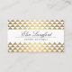 An eye-catching, geometric pattern of gold and white shapes creates a prism effect on this elegant business card template. © 1201AM CREATIVE