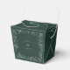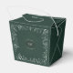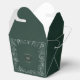 A sophisticated minimalist wedding favor box featuring a deep green background adorned with delicate white botanical illustrations. The center monogram adds a personal touch, making it perfect for weddings, anniversaries, or garden-themed celebrations. This favor box combines a modern design with nature-inspired elegance — ideal for packing small treats, candles, or keepsakes. The leafy frame detailing enhances the natural, serene aesthetic while maintaining a clean and timeless look.