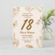 An elegant invitation card design celebrating an 18th birthday. The background features a warm beige tone with delicate decorative elements, including flowers, butterflies, and plants illustrated in fine golden lines