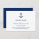 Nautical wedding reception enclosure card with a simple and modern design featuring a navy blue anchor over a white background. These elegant enclosure cards are perfect for a summer coastal themed wedding by the beach.