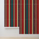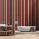 A classic pattern of vertical stripes in warm, autumnal hues of red, teal, and cream, accented by thin black lines. This timeless design evokes feelings of comfort, warmth, and nostalgia. Perfect for adding a touch of seasonal style to your home.