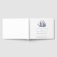 Impress your guests with this wedding guest book by JessicaAmber. This book features a detailed illustration of a frigate sailing ship, which you can replace with an image of the boat where you will be married (transparent or white background preferred). Elegant dark blue lettering in serif and script fonts lay out the bride and groom names, and details of the wedding, including the location and date.