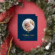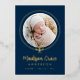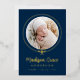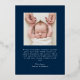 Introducing our Elegant Navy and Gold Foil Bow Photo Birth Announcement, a stunning way to celebrate your little one’s arrival. The baby’s photo is beautifully encircled by a gold foil ribbon tied in a bow on a navy background. Your baby's first and middle name appear in elegant calligraphy, with the last name and birth stats below. The back of the announcement offers space for an extra photo and a personal message. This luxurious, customisable keepsake is perfect for sharing your joy with family and friends!