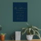 Elegant wedding welcome sign featuring "Welcome" in a modern gold foil calligraphy script with a navy background (or colour of your choice). Personalise the navy and gold foil wedding sign by adding your names, wedding date, and wedding location. The vertical welcome sign is designed to coordinate with our Modern Elegance wedding collection and is available in other colours.