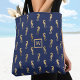 Elegant Navy and Gold Seahorses with Initial Tote Bag