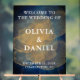 This elegant frosted acrylic sign features a deep navy background and faux gold calligraphy. A perfect choice for upscale indoor winter weddings.