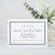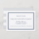 Designed to coordinate with our Navy Tides wedding invitation, this simple and chic wedding reception card is a perfect way to share your reception details with guests without overwhelming your main invitation. Design features a double border of rich nautical navy blue with elegant block and script lettering in matching navy blue. Add your reception timing, venue and any other key information, such as valet or shuttle details, using the fields provided. Cards reverse to pale grey and white wide horizontal stripes.