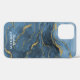 A pretty navy blue and gold marble Iphone 12 case personalised with your name in a script font for the first name and a sans serif font for the last name. Has a an elegant marble geode background. Designed for you by Blackberry Boulevard.