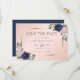 Navy blue and blush wedding save the date cards featuring a gold frame decorated with roses. Matching items available.