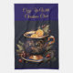 Add festive elegance to your kitchen with this stunning vintage navy blue and gold Christmas kitchen towel. Beautifully decorated with golden teacups, wine glasses, and ornate goblets adorned with lush holiday foliage, berries, and trimmings, this towel captures the magic of a classic Christmas in timeless style. The intricate navy and gold design brings warmth, sophistication, and a touch of luxury to your holiday home décor. Perfect for entertaining, gifting, or simply adding a regal festive charm to your kitchen.