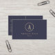 Elegant Navy Blue and Gold Glitter Monogram Business Card