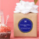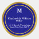 Elegant Navy Blue and Gold Monogram Address Classic Round Sticker