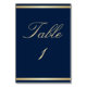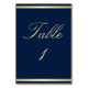This Navy Blue and Gold Wedding Table Number Card is designed with Gold coloured text and borders on a Navy background. To add your table numbers, simply insert one number - per card ordered - into our easy template, replacing the sample text - shown as 1. Note the number will automatically repeat on the reverse side.