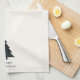 Modern Christmas kitchen towel featuring a timeless design with a Christmas tree with a muted navy blue and green plaid pattern along with the greeting "Merry Christmas".