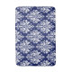 Elegant Navy Blue and White Damask Pattern Bath Mat