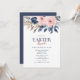 Elegant Navy Blue Blush Pink Floral Easter Lunch Invitation
