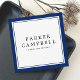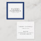 Elegant, professional business cards or personal profile cards with your name and title/company name printed on the front with a navy blue border along the edge of the card. On the back are customisable template fields for your name, title/company name/speciality and contact information. A minimal and classy design for any industry