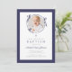 Elegant Navy Blue Bow Photo Baptism Invitation. For best results upload a square image of the baby.