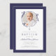 Elegant Navy Blue Bow Photo Baptism Invitation