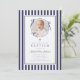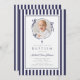 Elegant Navy Blue Bow Photo Boy Baptism Invitation