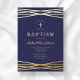 Personalised Elegant Navy Blue Boy Baptism Gold Foil Invitation.