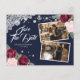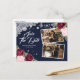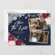 Elegant Navy Blue Burgundy Blush Floral Lace Photo Announcement Postcard