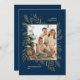 Send warm holiday wishes with this elegant midnight navy blue Christmas photo card featuring a sophisticated gold foliage frame, customisable family photo, and personalised text. Perfect for families looking to share festive greetings in style, this modern yet timeless holiday card is easy to personalise with your name, year, and special message. Ideal for mailing to loved ones, friends, and colleagues, it makes a memorable keepsake for the holiday season.